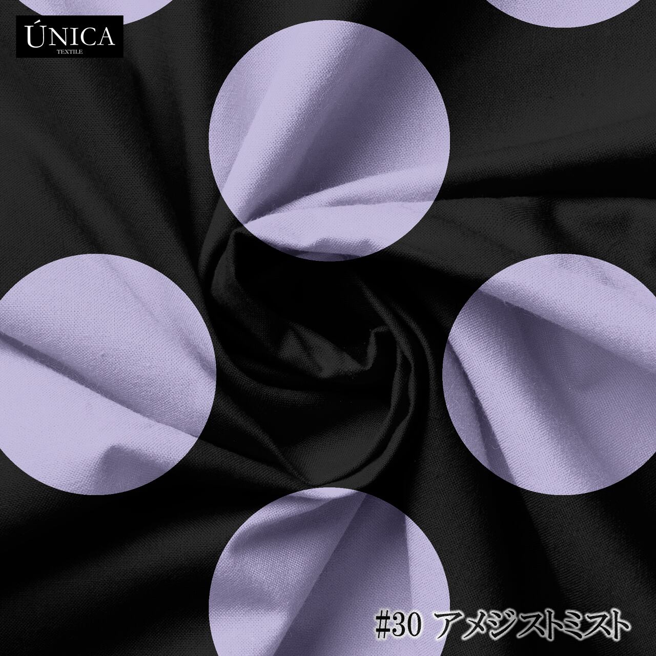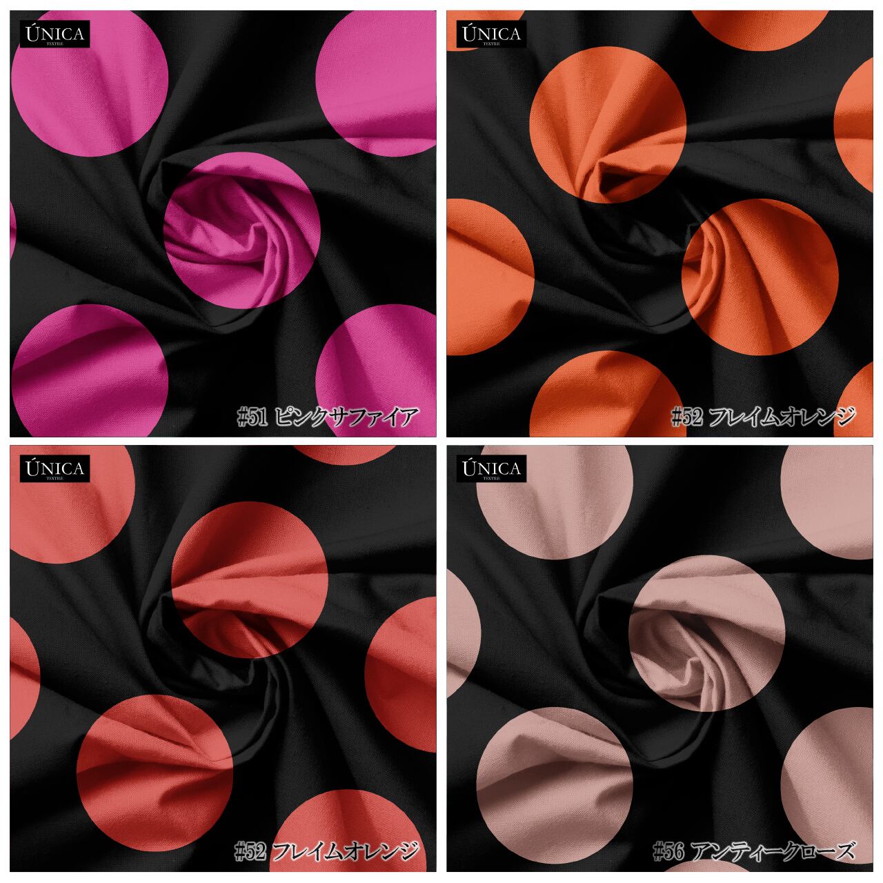 本商品はカラー生地をベースに昇華転写で黒のドット〔55mm〕をプリントしております。