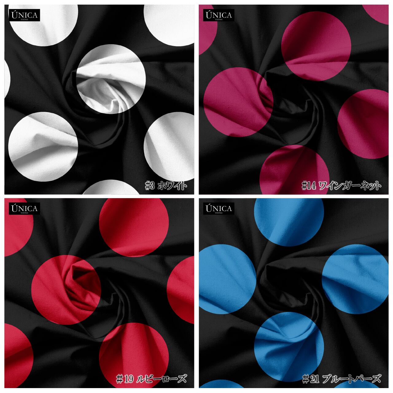 ・配色:カラー地 × 黒水玉(カラーはオプションから選択)