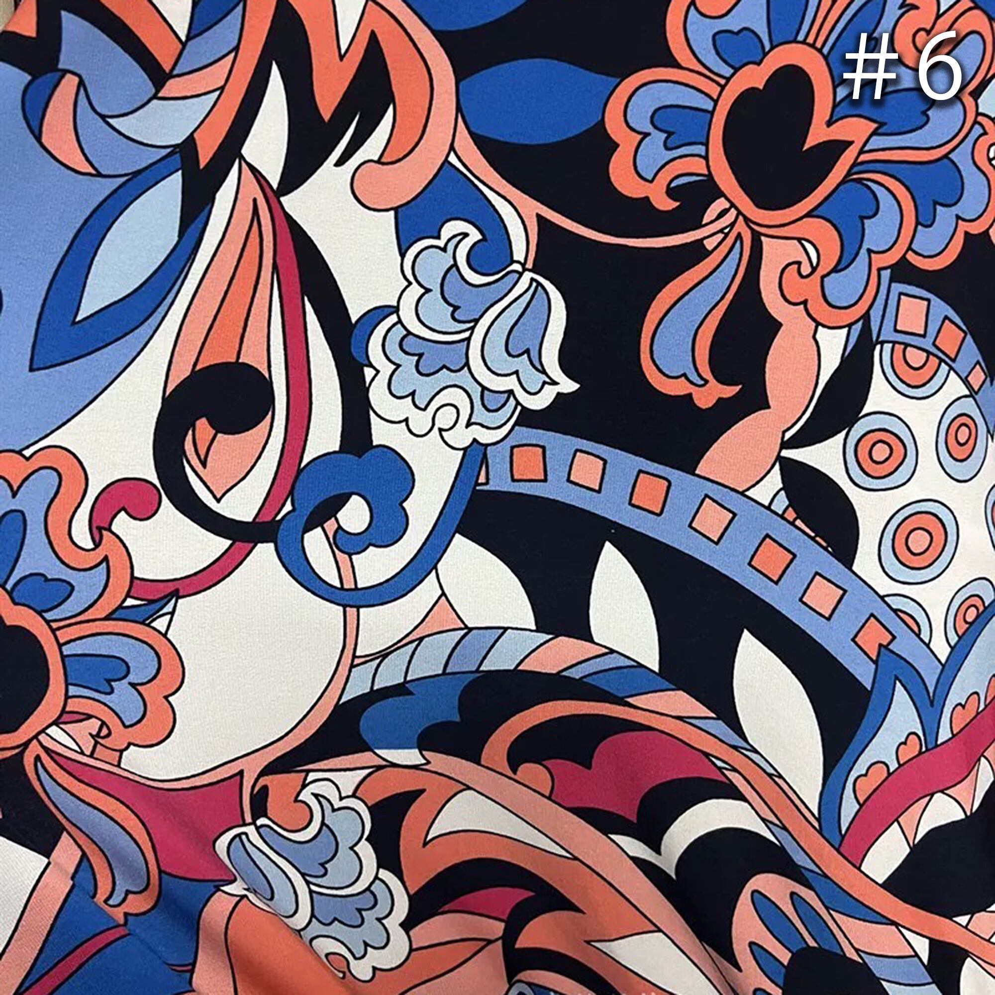 【品名】プッチ柄風ペイズリーストレッチニット生地