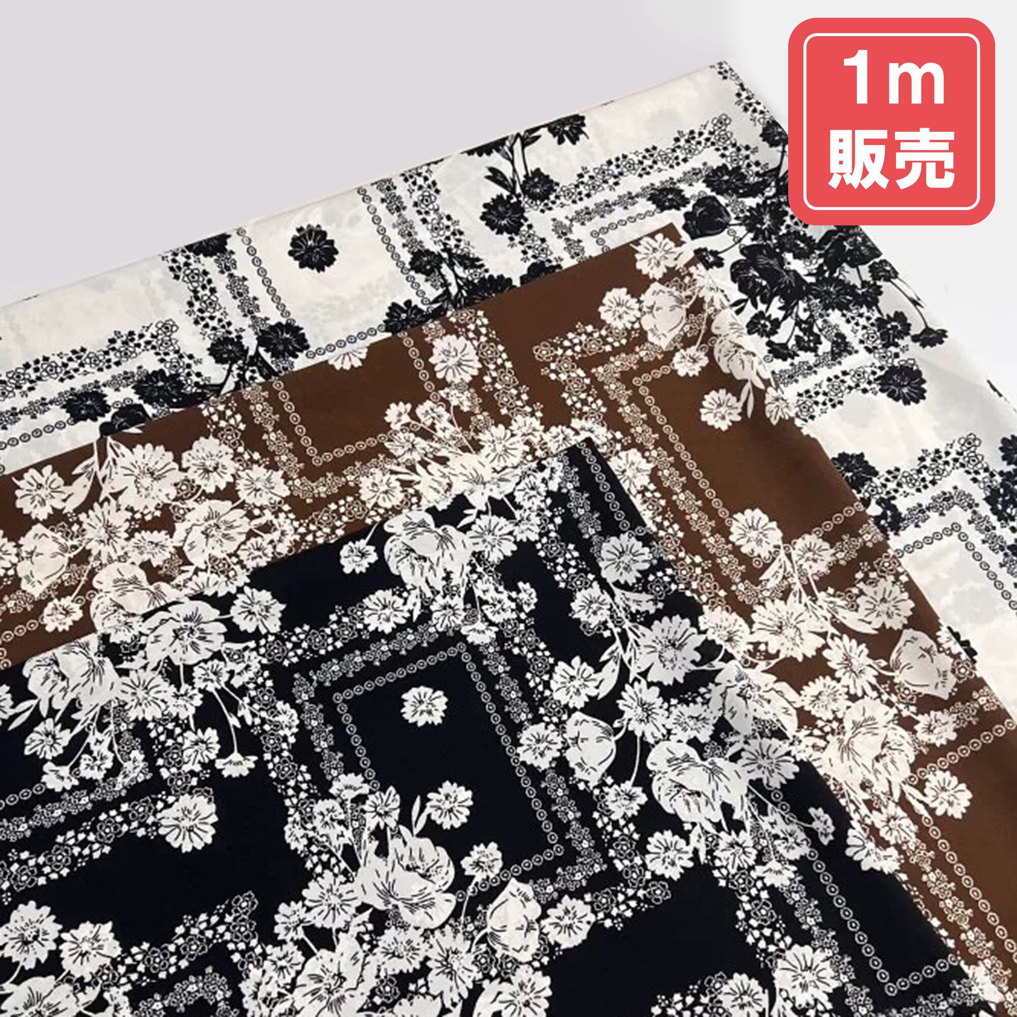 T-002A クラシカルフラワーデザイン / ポリエステル生地 / 全3色 / 生地巾150㎝ ≪1m単位販売≫