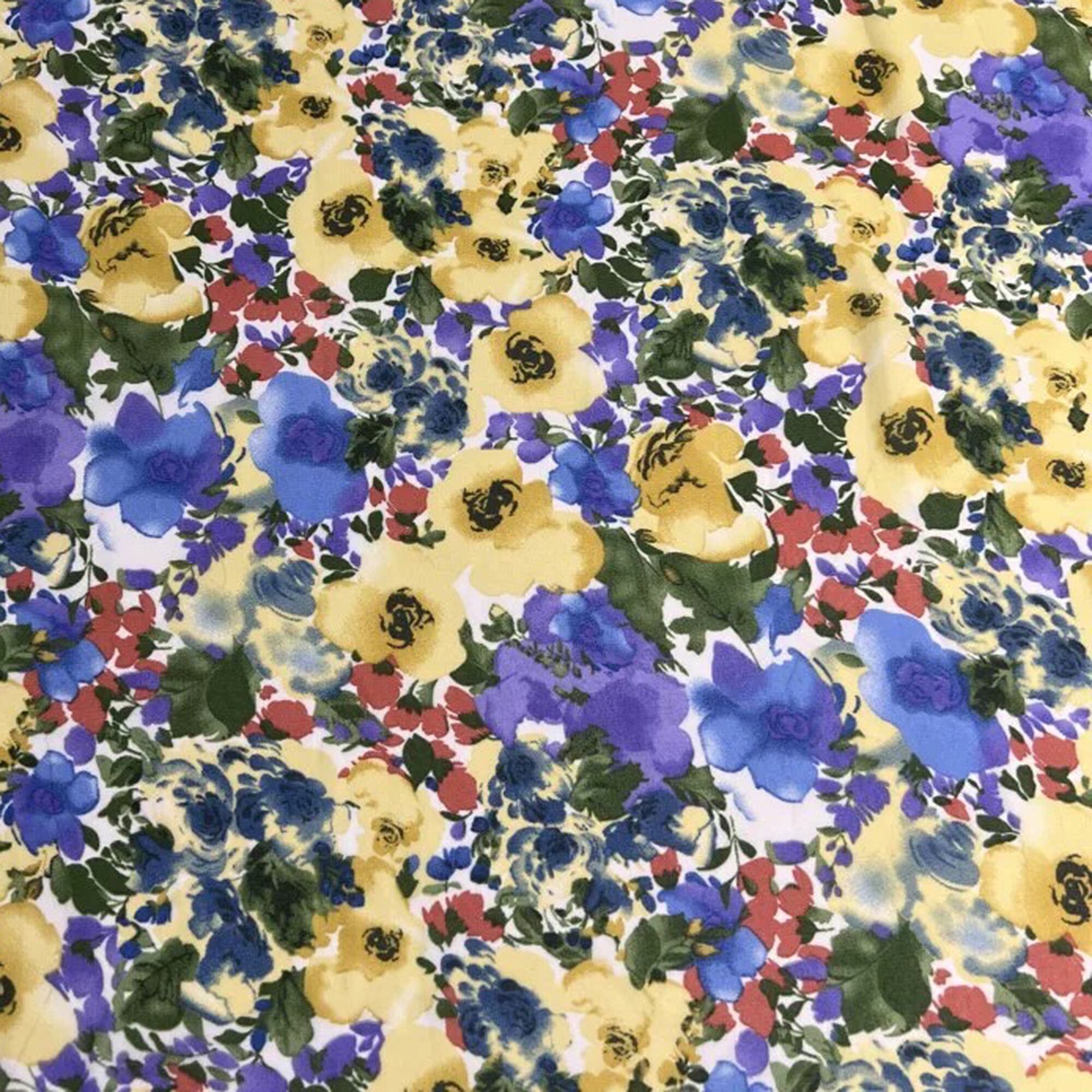 T-003A 水彩画風フラワーデザイン / ポリエステル生地 / 全4色 / 生地巾150㎝ ≪1m単位販売≫