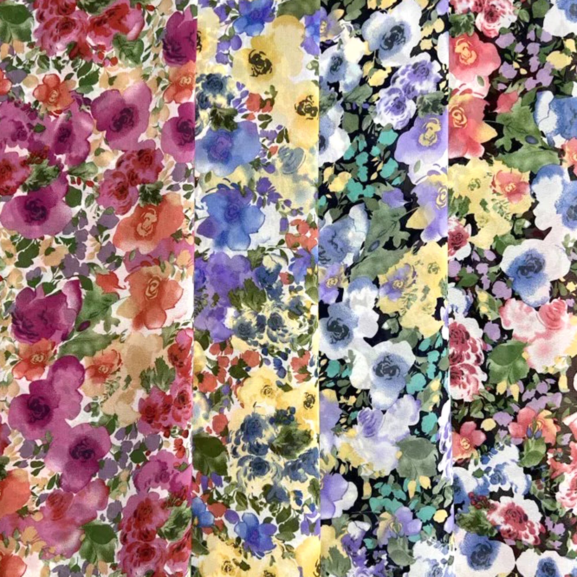 T-003C 水彩画風フラワーデザイン / ポリエステル生地 / 全4色 / 生地巾150㎝ ≪5m単位販売≫